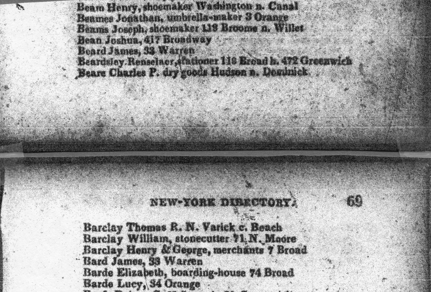 1824-25 (New York) - Beard, James, 33 Warren (no occupation).